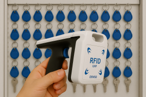 「タグ衛門」は、鍵・備品・工具などをRFIDで一括読み取りし、棚卸と持出返却台帳をペーパーレスで厳密に管理できるソリューションである。