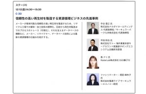 本パネルは、サーキュラーパートナーシップEXPOの主要プログラムの一つで、メーカーが使える高品質な再生材をどう生み出すかをテーマに、最新の取り組みをご紹介します。リサイクル工場での解体・加工技術の標準化、回収から再生材製造までのプロセスの可視化(トレース)、そしてそれらを支えるデータ基盤の構築など、資源循環ビジネスにおける最先端の事例が議論されます。