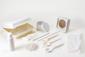 環境配慮型素材として注目されるバイオマスプラスチックと生分解性プラスチックを展示します。