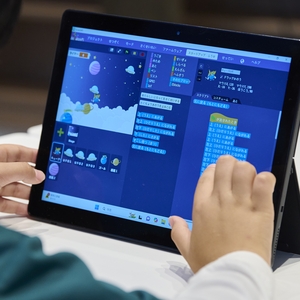 『スタートアップコース』はタブレットで考え方を学び、ロボット教材にも慣れていきます。
