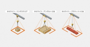 クレーン吊荷周囲の立入禁止ゾーンを明示する注意喚起照明として11月15日より新製品2機種の受注を開始します。従来品の「ホロライト・リングスクエア」と比較して、大きな吊荷や長い吊荷に対して「囲う」ことが可能となりました。