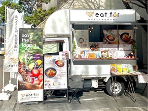 「食べることが、社会貢献に。」を掲げるエシカルなキッチンカーです。グランドメニューとして、ヴィーガンのスパイスカレー、そして、国産豚の生姜焼きをご用意しています。今日のお食事が、自然相手に一生懸命につくる農家さんを支え、日本の豊かな田畑や文化を、次世代へ守り、つないでいきます。食べて、つながる。食べて、つなげる。ぜひ、キッチンカーeat for へお立ち寄りください。