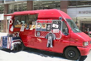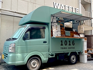 米粉を使用した”グルテンフリー”の焼き立てワッフルと、オリジナルブレンドコーヒーを中心としたドリンクを提供するフードトラックカフェ。
