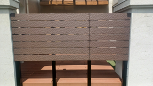 当社は樹脂フェンスや人工木デッキ、フェンスや樹脂フェンスのメーカーである。人工木や樹脂でありながら、その見た目や加工性はまるで木材に近い商品である。ぜひブースにお立ち寄りください。