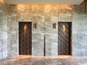 エレベーター製品や内装意匠材として採用されてきた「硫化いぶし風塗装」をはじめ、研磨したアルミ材を用いた特殊塗装仕上げや、凹凸によって立体感を表現するレリーフ塗装を紹介する。