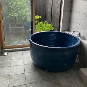滋賀県の信楽焼陶器製浴槽は、土のぬくもりと職人技が融合した重厚感ある逸品です。