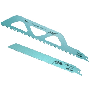 現場が選んだセーバーソーブレードはコレだった! 各種セーバーソー・レシプロソー対応ブレードの展示。現場の生産性向上と作業効率アップを両立させるため独自の刃先設計とバイメタル構造を採用。