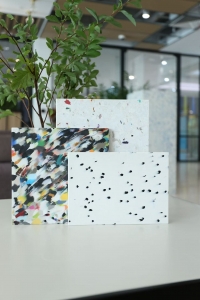 RePlasTerial社は、中国のハイエンド再生プラスチックパネルブランドである。同社は世界トップクラスのリサイクル技術を活用し、100% 廃プラスチックを原料としてカーボンニュートラルパネルを製造。アクリル樹脂と比較して排出量を 89.14% 削減できる。環境配慮と美的デザインを両立させるため、300 種類以上のカスタムデザインを提供し、複数の機関から認証を取得している。