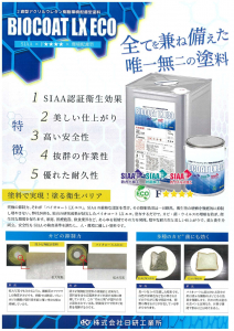 F☆☆☆☆取得、特化則対応で安全安心であり、浴室塗料は開発時に塗装後の揮発性有機化合物(VOC)にも配慮し優れた防カビ・抗菌効果を発揮しする。 衛生管理が求められる現場に最適な、環境対応型塗料。