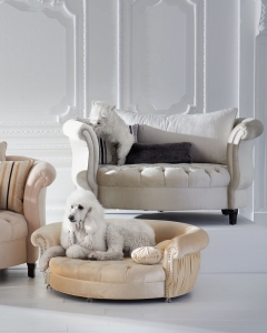 中世ヨーロッパの普遍的なクラシックスタイルと、今を生きるコンテンポラリーなスタイルを融合させたインテリア雑貨を展開するハルモニア。今回は、セレブに愛用されているメイドイン ハリウッドのペットソファ。デザインや生地、カラーなどが選べるセミオーダーメイド。ハリウッドにある工房でひとつずつ手作りされたラグジュアリーなペット用ソファ。