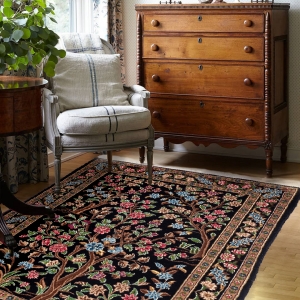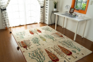 手織り絨毯 ●天然素材のギャッベ -素材の調達から草木染・手紡ぎ・仕上げに至る工程を自社で品質管理している ●ウール、シルク、ウール&シルク それぞれの素材の絨毯 有名工房の作品から普段使いの絨毯を展示