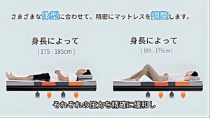 DPM Point-To-Point® Spinefit Mattrressは、正確な調整により、腰をサポートし、肩と腰の圧力を解放する。- Point-To-Point®リリーフシステム:様々な硬さの素材を使用しているため、正確な設定が可能。