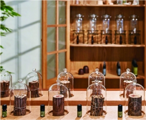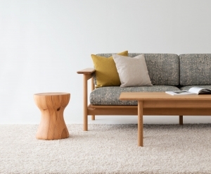 創業100年の老舗家具メーカー飛驒産業による新作家具を中心としたライフスタイルの提案。新しい発想で福祉との関わりの幅を拡げていくヘラルボニーとの協業によるオリジナルファブリックを纏った椅子やソファ、家具に使用されない木材や枝葉などを活用して生産する100%天然・無添加のアロマオイルなどを展示する。