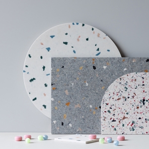 STELAPOP is a board material upcycled from apparel waste (denim). Made from color-sorted denim offcuts, it offers vivid hues and rich texture. Easy to work like wood, with cutting, drilling, bonding, and bending, it suits retail fixtures and wainscoting. Our booth shows apparel/cosmetics fixtures and wainscoting examples, letting visitors experience its texture and workability.