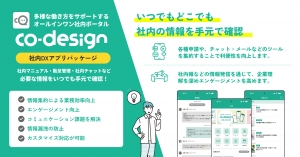 「Co-design」は、社内DXポータルアプリである。チャット機能や掲示板で社員の伝達をスムーズに行えるようになり、他システムの連携、カスタマイズが可能で、拡張性の高いアプリパッケージである。
