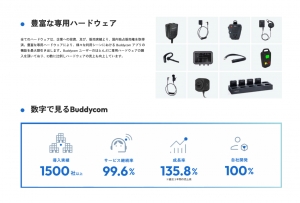 「Buddycom(バディコム)」は、音声・動画・位置情報をリアルタイムに共有できるSaaS型のインカムアプリ。現場の生産性向上や迅速な意思決定を支援し、小売業界の接客、物流、店舗管理における効率化を実現する。本ブースでは、カスタマーハラスメント対策のための新機能に加え、IoT連携やAI機能などの活用によってチームの連携を強化する最新の機能やサービスを展示する。
