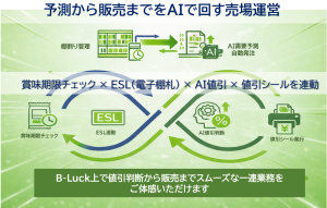 本年度は「流通小売業のAIパートナー」を掲げ、AIによる売場と倉庫の業務を高度化をコンセプトに、需要予測・棚割り・品揃え・生鮮運営・値引・出荷までをつなぐ流通小売業向けAIソリューションを紹介。