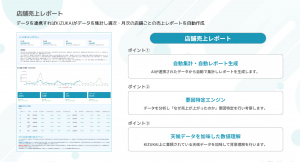KiZUKAIは、売上や在庫などの数値変化を生成AIが読み解き、背景や要因を提示する小売向けAIプラットフォームである。