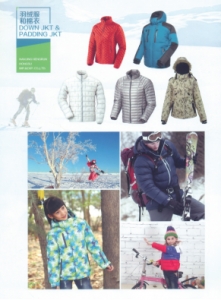 ski wear,down wear,padding wear ,seam-taped wear ,knit wear,softsell wear ,pants.